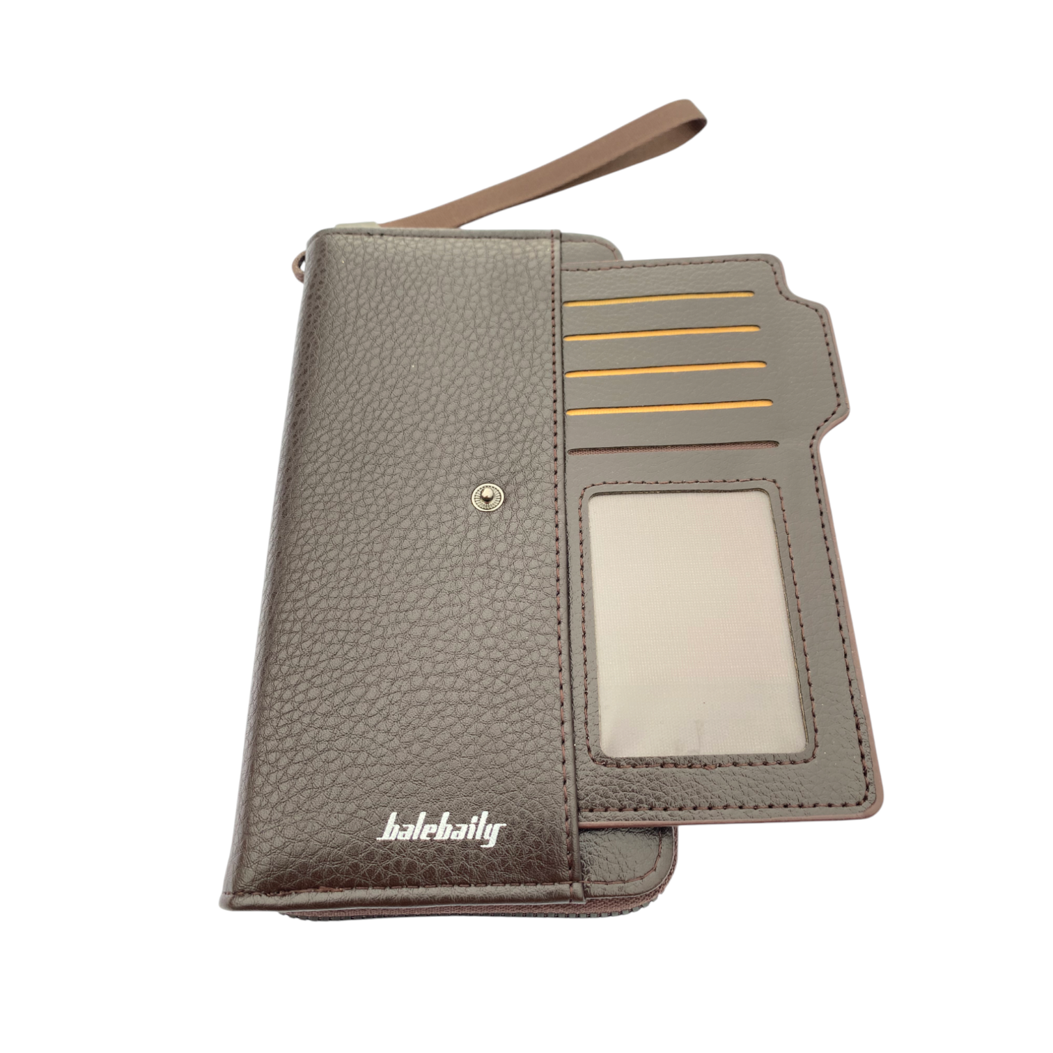 Sleek, versatile, and designed for all — the TerraFold Luxe Wallet blends timeless elegance with everyday practicality. Crafted from textured eco-leather in an earthy deep mocha tone, this unisex wallet features a sophisticated button clasp, fine stitched accents, and a wristlet strap for convenient carrying. The minimalist silhouette makes it perfect for both casual and formal styles, offering a refined look without compromising functionality.